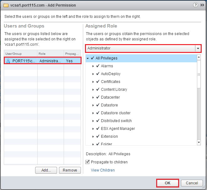 You should now see your user or group added to your VCSA. Depending on your permissions you should now be able to login do various bits and pieces.