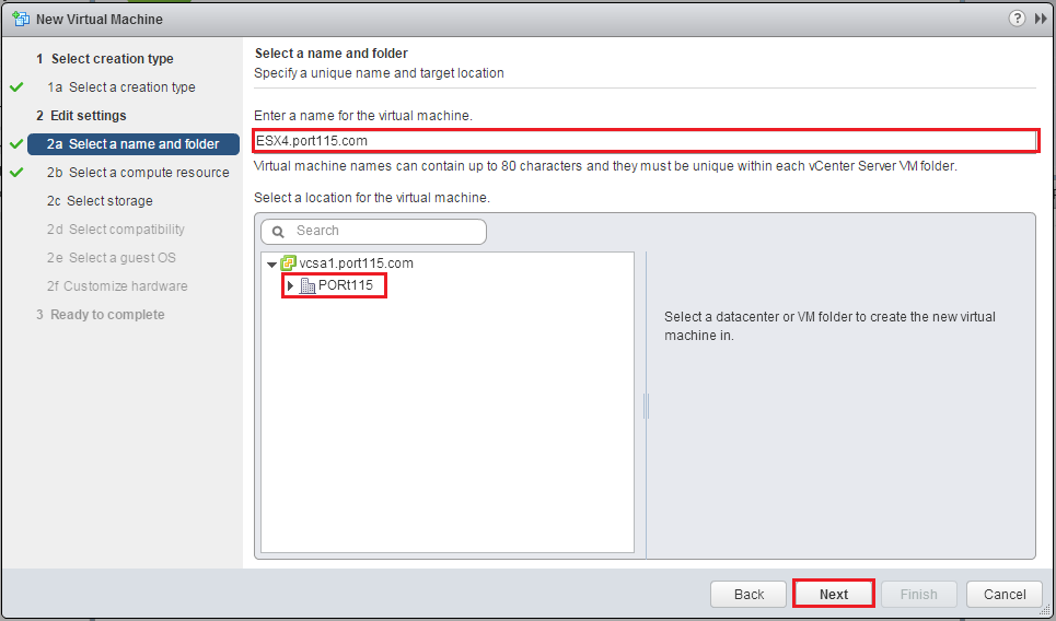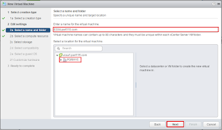 5. Give the Virtual Machine a name and select the Datacenter we created in Part 7 and Click Next.