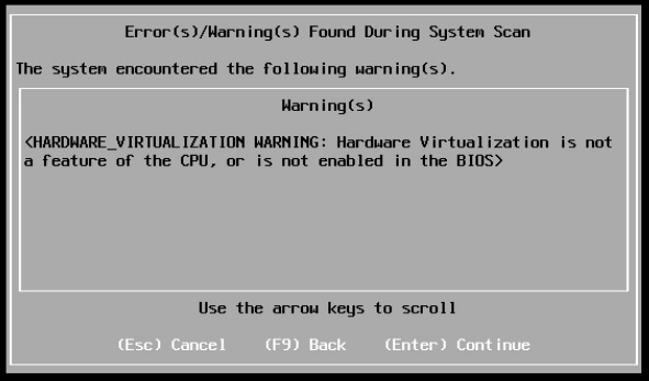 18.1 This error will appear if you have not set the Hardware Virtualization Flag in the CPU settings of the VM and you’ll need to go back and set it.